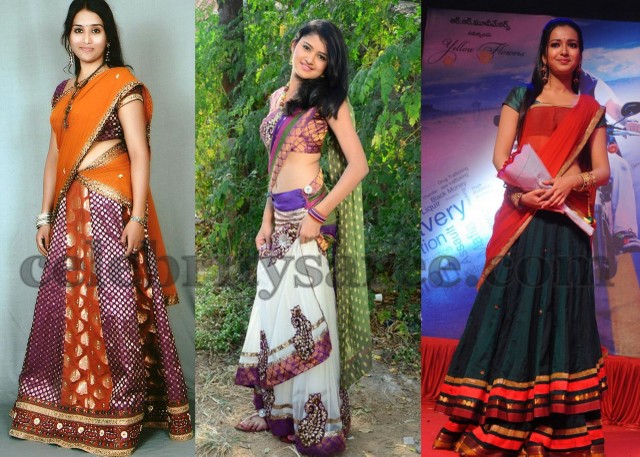 Green Telugu Traditional Half Sarees : But, times have changed and all sorts of combinations are available now.
